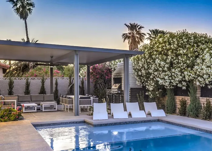 Situated 3.8 km from the Wayne Newton's Casa de Shenandoah, the 3-bedroom Sunset Swim, Luxury Vegas Villa With Pool, Hot Tub Las Vegas entices guests to explore various tourist attractions in the area.